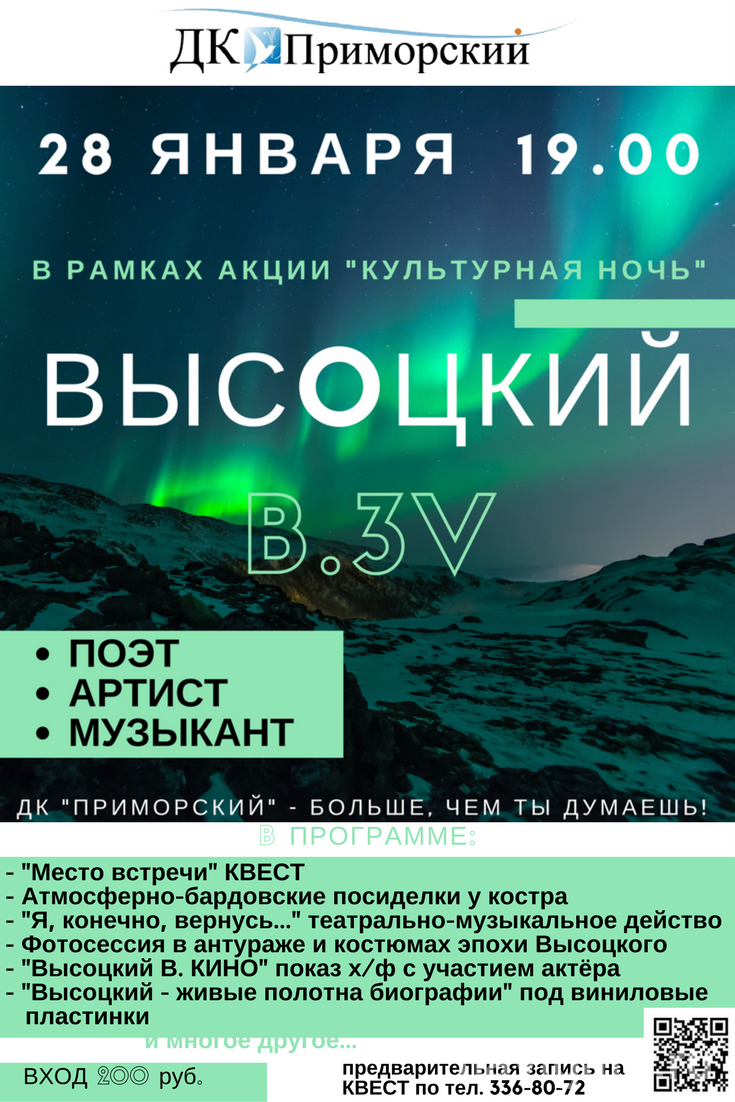 28 января в ДК «Приморский» состоится атмосферное действо, посвященное 80-летию со дня рождения Владимира Высоцкого.