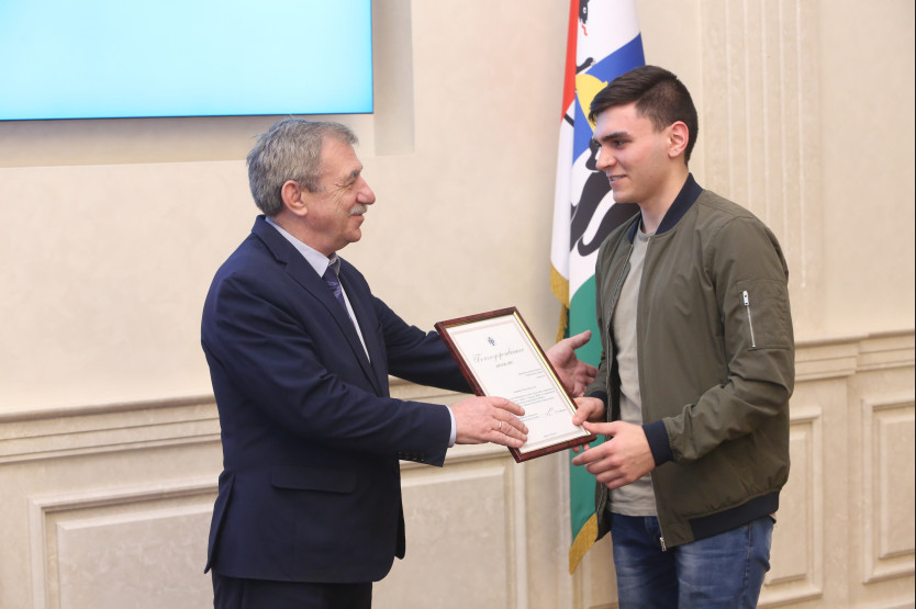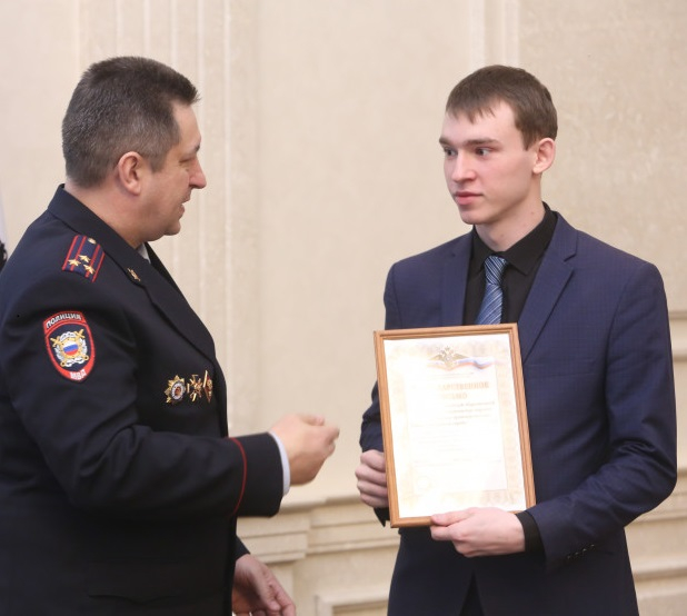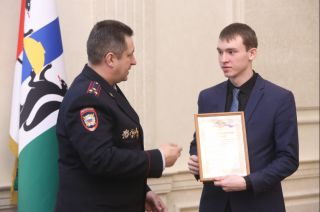 В конце заседания наградили тех, кто помогает полиции. Среди них и студент НГУ Александр Сырбу.