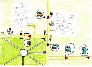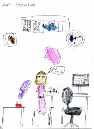 На занятии параллельно с узнаванием сути математического процесса у детей шёл процесс художественный. Под руководством Светланы Шендрик они создали ряд замечательных рисунков, раскрывающих Теорию расписаний с различных сторон: и прикладной, и философской, и даже юмористической.