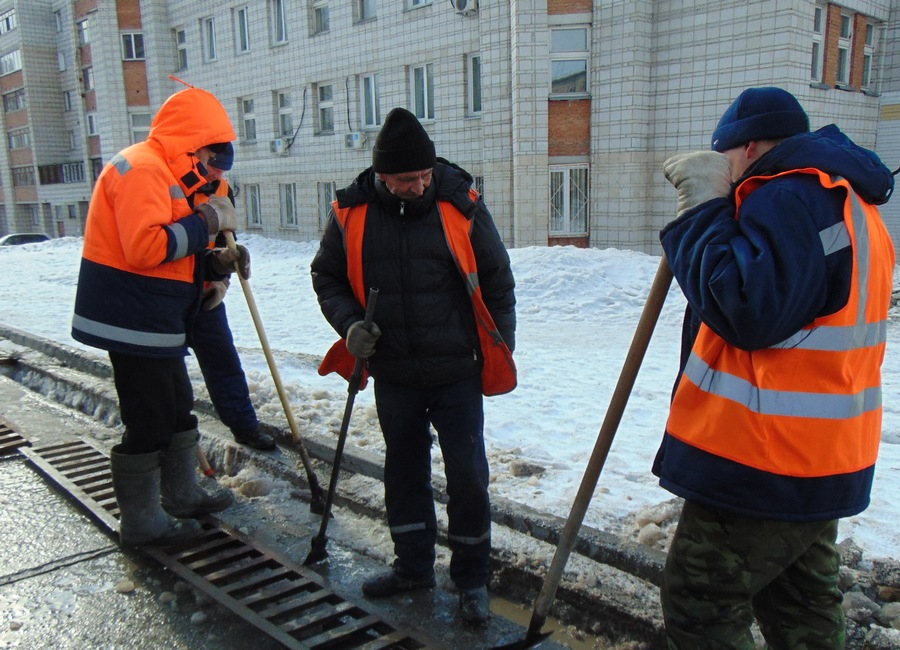 На Ветлужской, 26 – чистота и порядок: проезд и парковка вычищены, ливневая канализация готова к приему талых вод. Это самое низкое место, куда бегут ручьи со всей округи. Пока нет необходимости проливать ее горячей водой, отмечает Светлана Ильюшонок, линейный управляющий УК «Октябрьская».