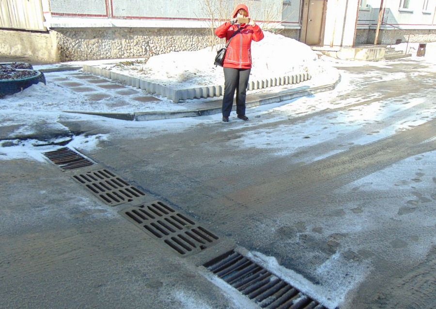 – Как показал вчерашний теплый день, всё работает. Сюда бежал ручей, вода нормально уходила. Подходы к подъездам сухие, поэтому противогололедную посыпку песком уже не делаем, – говорит Светлана Николаевна.