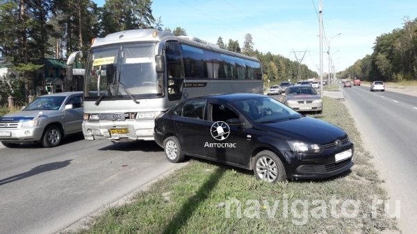Рейсовый автобус ударил Volkswagen Polo на Бердском шоссе