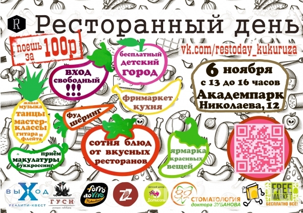 6 ноября (воскресенье) в столовой Кукуруза в Академпарке (ул. Николаева, д. 12, правая башня) с 13.00 до 16.00 пройдет фестиваль "Ресторанный день в Кукурузе".