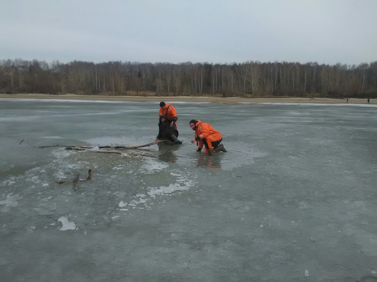 О случившемся спасателям сообщили очевидцы. По их словам, мужчина провалился под лед и не может самостоятельно выбраться из воды.