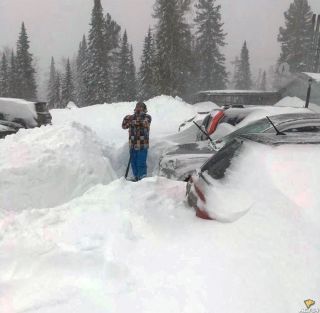 С трудом выбираются новосибирцы из Шерегеша из-за сильных снегопадов