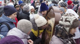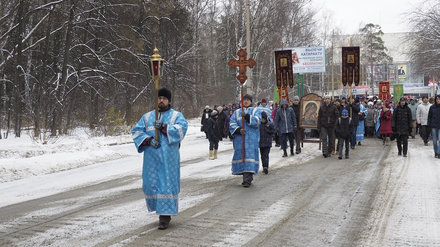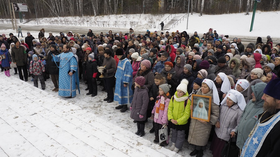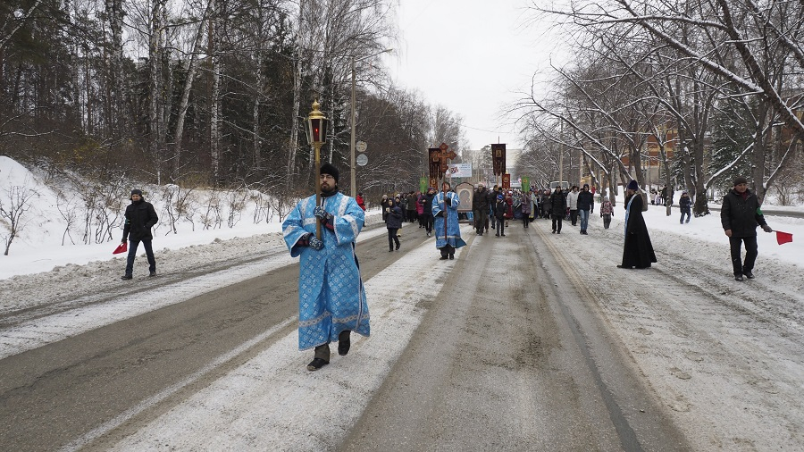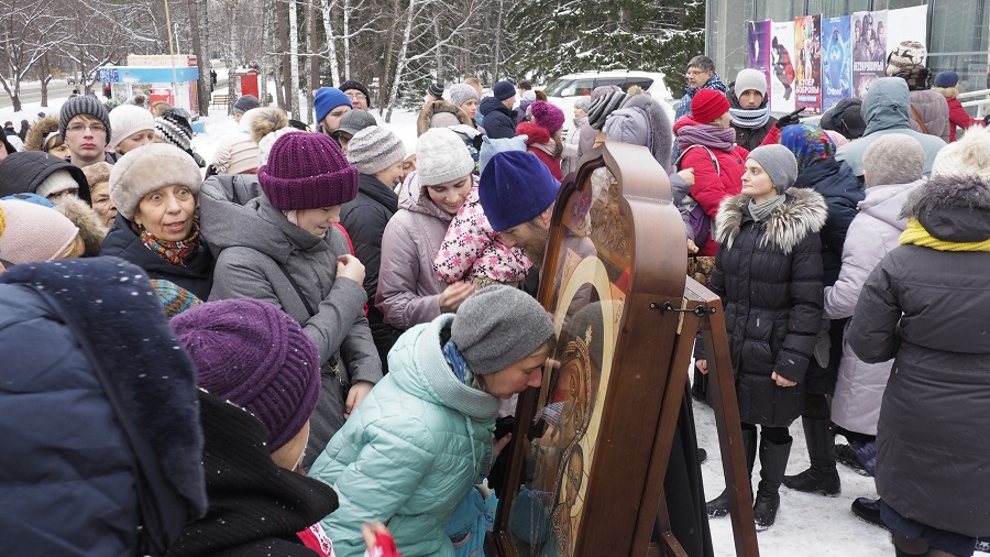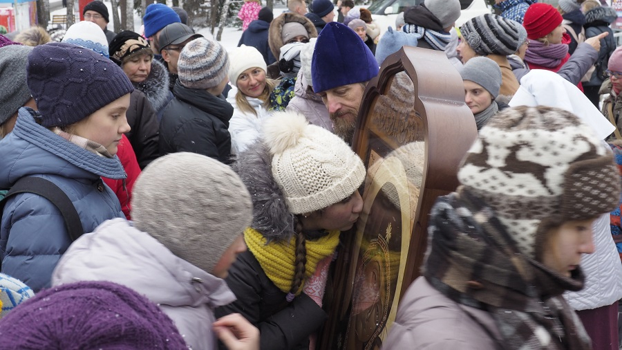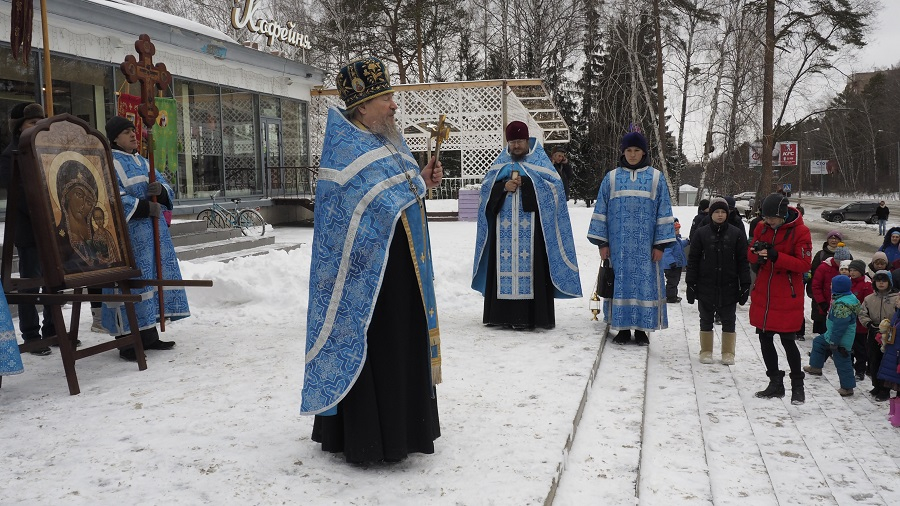 По традиции крестный ход завершился небольшим молебном на крыльце Дома культуры «Академия». Батюшка пожелал собравшимся здоровья и благополучия. А после все желающие могли прикоснуться к иконе Божией Матери.