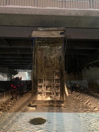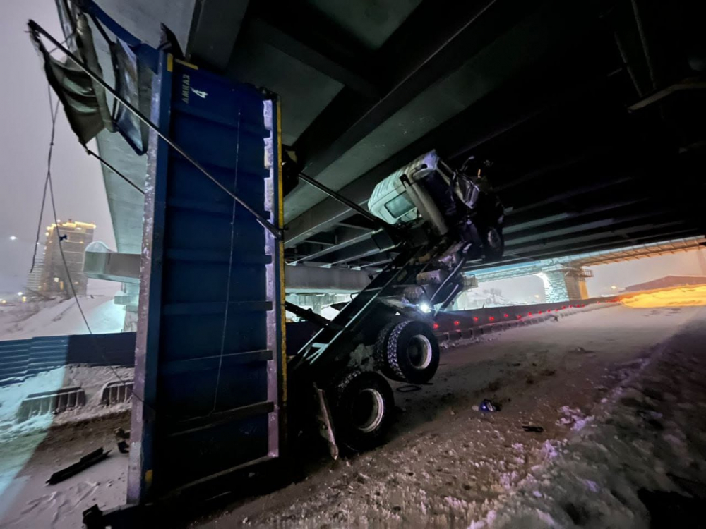 Самосвал зацепился открытым кузовом за мост, водитель погиб