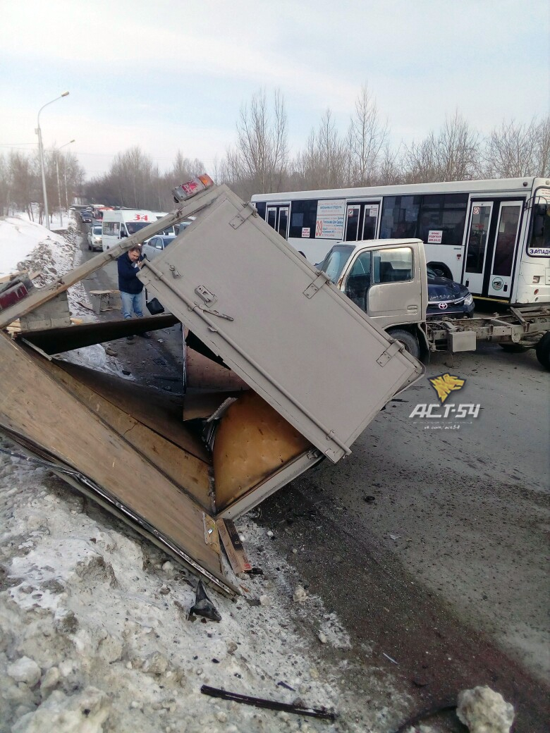 Водитель Honda Fit разбил нос и губу, другие водители в аварии не получили повреждений. На скорой увезли пассажира из хэтчбека. На Honda Fit установлен знак «Начинающий водитель». Будка с грузовика оказалась полностью уничтожена. От мужчины на Honda несло алкоголем, он даже на ногах еле стоял. Несколько раз вся компания пыталась убежать с места ДТП, но очевидцы их останавливали, – рассказал подробности случившегося в группе АТС-54 очевидец.