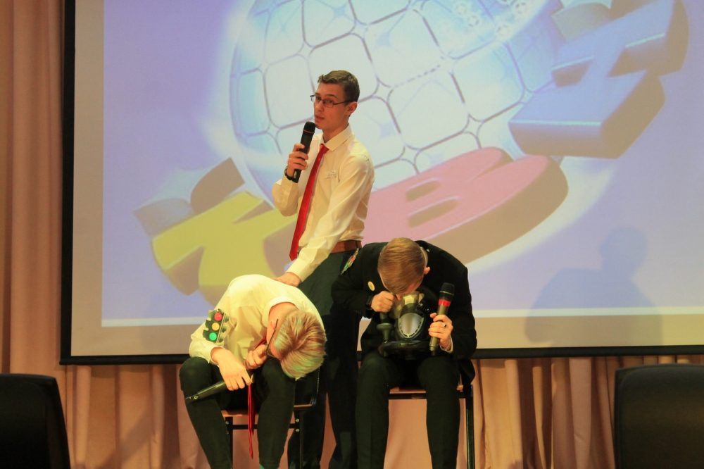 На первое место вышли КВНщики из 165-й школы, которых выгодно отличали динамика, умение держаться на сцене и устанавливать контакт с залом – да такой, что самая скромная шутка неизбежно вызывала если и не взрыв хохота, то улыбку обязательно!