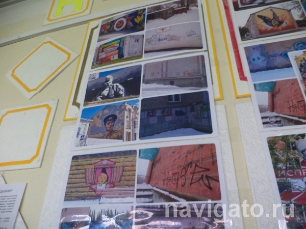 Каждый плакат, выполненный ребятами, состоит из двух частей. На одной – добротное граффити крупных размеров на стене зданий и гаражей, на другой – нынешние фасады домов и стены ГСК, расположенных в нашем районе, изуродованные глупыми надписями и рисунками. Места вполне узнаваемы.