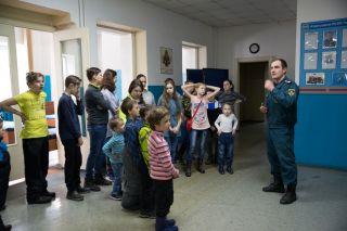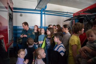 Ознакомительная экскурсия по пожарной части №8 прошла 12 апреля. В ней участвовали ученики среднего звена с преподавателем обществознания и малыши с родителями.