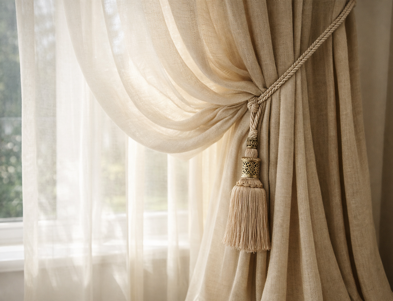 К этой группе обычно относят вуаль, органзу, батист и некоторые смесовые полотна с тонкой структурой. Такие материалы хорошо подходят для комнат, где хочется сохранить ощущение простора и не перегружать окно тяжёлым оформлением. Они красиво рассеивают солнечный свет, делают пространство визуально легче и часто используются как самостоятельное решение или как дополнение к более плотным портьерам. Но нужно помнить, что тонкие ткани меньше защищают от яркого солнца и посторонних взглядов в вечернее время, поэтому их выбирают там, где это не становится проблемой.