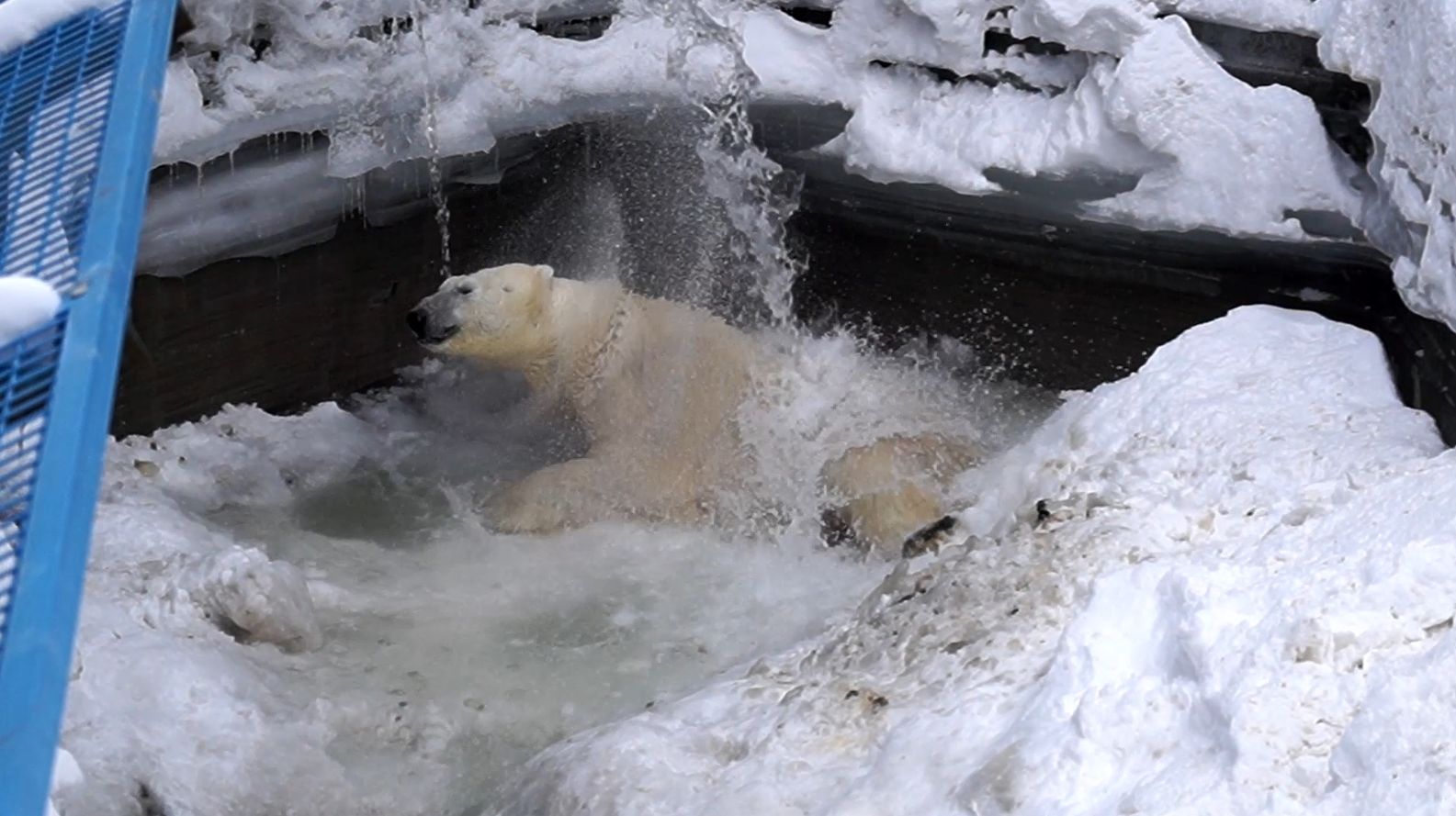 Это еще один знак наступившей весны. В вольерах белых медведей много снега, сугробы настолько большие, что медвежата Норди и Шайна делают в них норы и даже берлоги. Но температура воздуха уже позволяет запустить систему подачи воды в бассейны. Начали мы с вольера белого медведя Кая, – рассказывают в Новосибирском зоопарке.