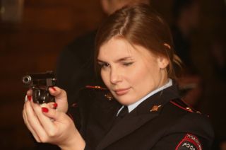 Следующим испытанием стала огневая подготовка. По условиям конкурса каждая девушка в течение десяти секунд должна сделать четыре выстрела из пистолета Макарова и поразить специально обозначенную зону мишени не менее чем тремя пулями. Победитель определяется по сумме набранных баллов. Завершились состязания в спортивном зале, где девушки соревновались в силе и быстроте, и собеседованием о творческом этапе конкурса.