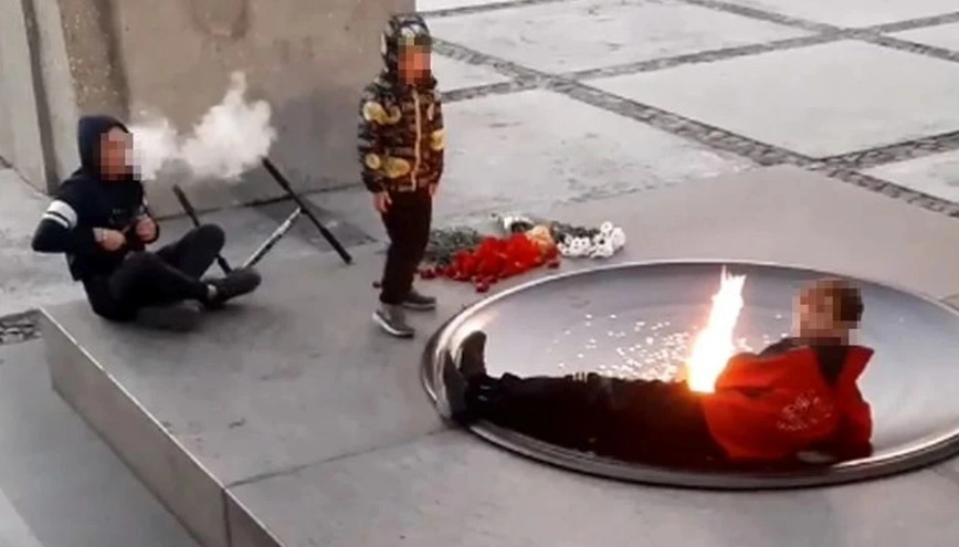 Видео с выходкой школьников появилось в группе «АСТ-54» соцсети «ВКонтакте» 16 октября. Несовершеннолетние курили, лежа у Вечного огня на Монументе Славы, и бросали в него монеты или, по другой информации, камни.