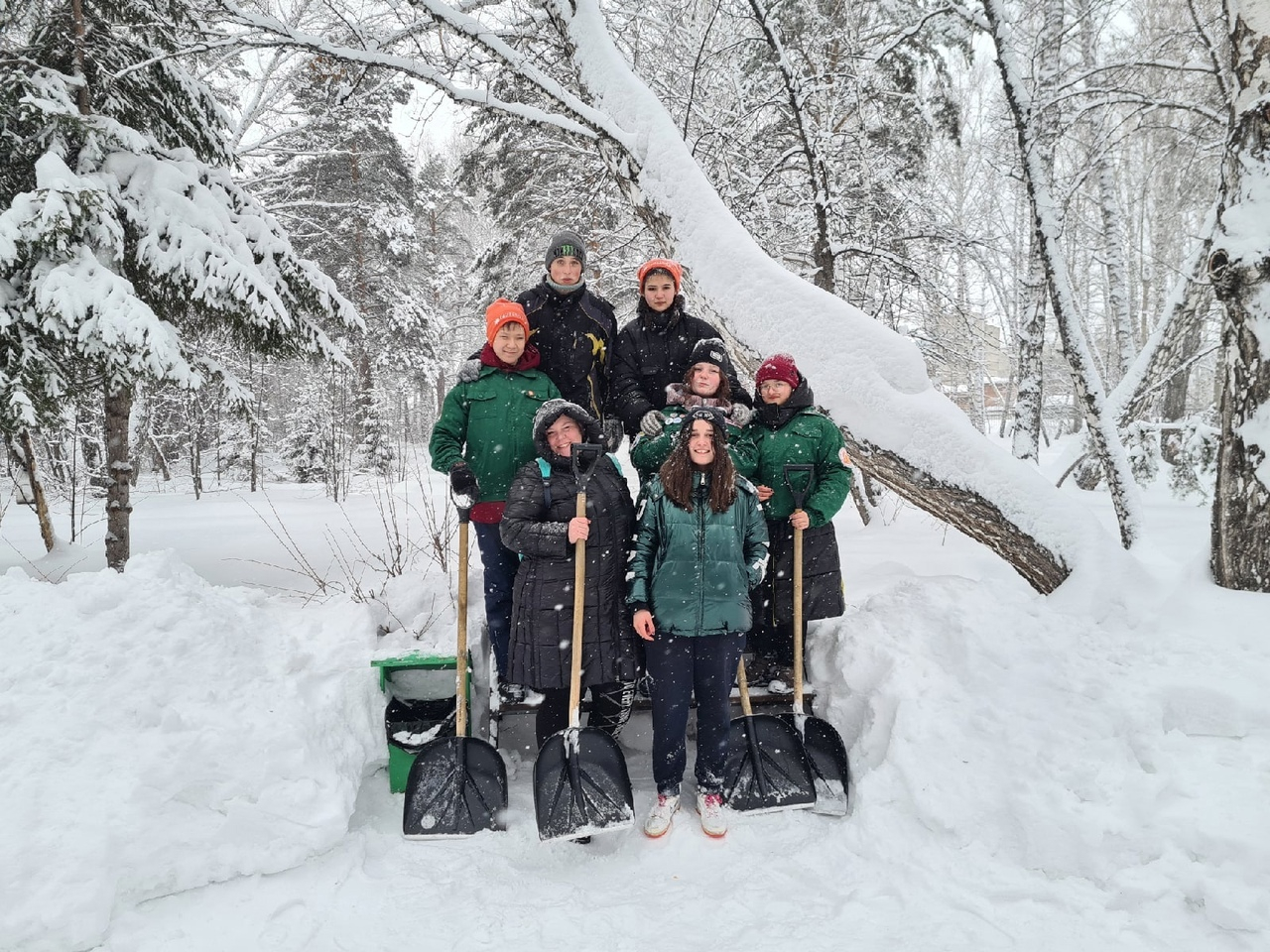 Ребята вышли на уборку дворов ветеранов в поселке Огурцово. Стояла задача убрать снег вокруг домов, чтобы, когда придет весна и всё начнет таять, вода не пошла в подпол. Затем снегоборцы отправились в парк «У моря Обского», но вовсе не для того, чтобы отдохнуть.