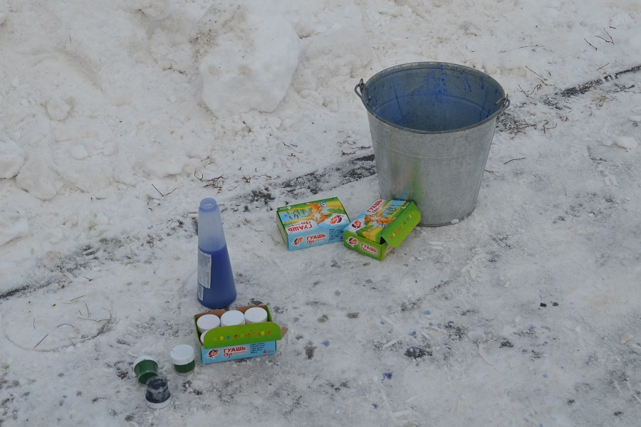 Все выходные кипела работа. Пока одни аккуратно вырезали из снежных кубов очертания фигур или доделывали мелкие детали, другие, вооружившись пульверизатором с краской, красили свои творения.