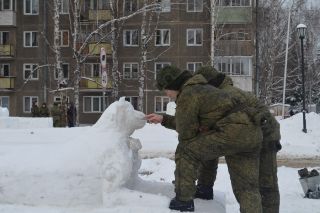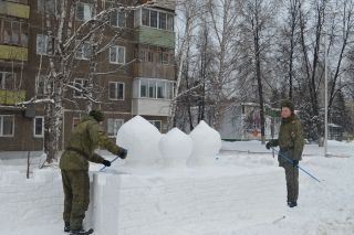 Снежный десант: курсанты НВВКУ украсили улицу Иванова зимними скульптурами