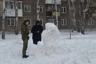 Снежные фигуры, а их больше 20, действительно приковывают внимание всех прохожих. И взрослые, и дети подолгу рассматривают каждую. Курсанты скромно улыбаются и только иногда спрашивают у прохожих: «Нравится?»
