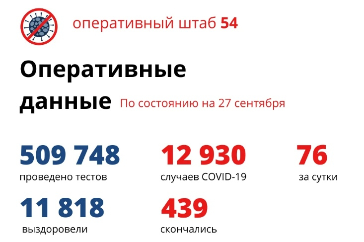 На 26 сентября в Новосибирской области было выявлено 72 случая COVID-19, спустя сутки выявили 76. На вчерашнюю дату было 758 заболевших детей, сегодня 762 ребенка. На одного несовершеннолетнего больше госпитализировали в инфекционную больницу: туда направлен 21 ребенок с подозрением на коронавирус, в том числе дети с подтвержденным диагнозом.