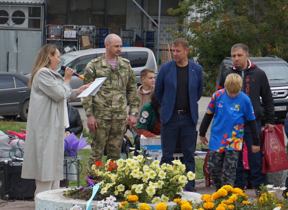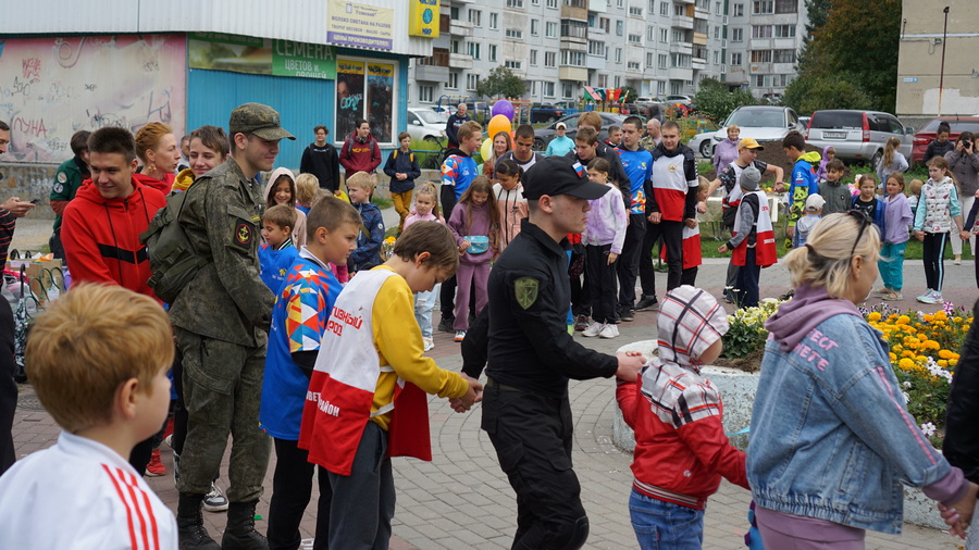 Вела праздник Юлия Голубева, председатель совета дома по ул. Молодости, 46. Первое слово она дала Дамиру Шавкину – участнику спецопераций в Сирии и на Украине. Дамиру в сентябре исполнится 21 год, но волей судьбы он многое повидал. После года в армии остался на службу по контракту, и ему выпали серьезные испытания. Собравшиеся поблагодарили его и маму, воспитавшую такого смелого, отважного сына.