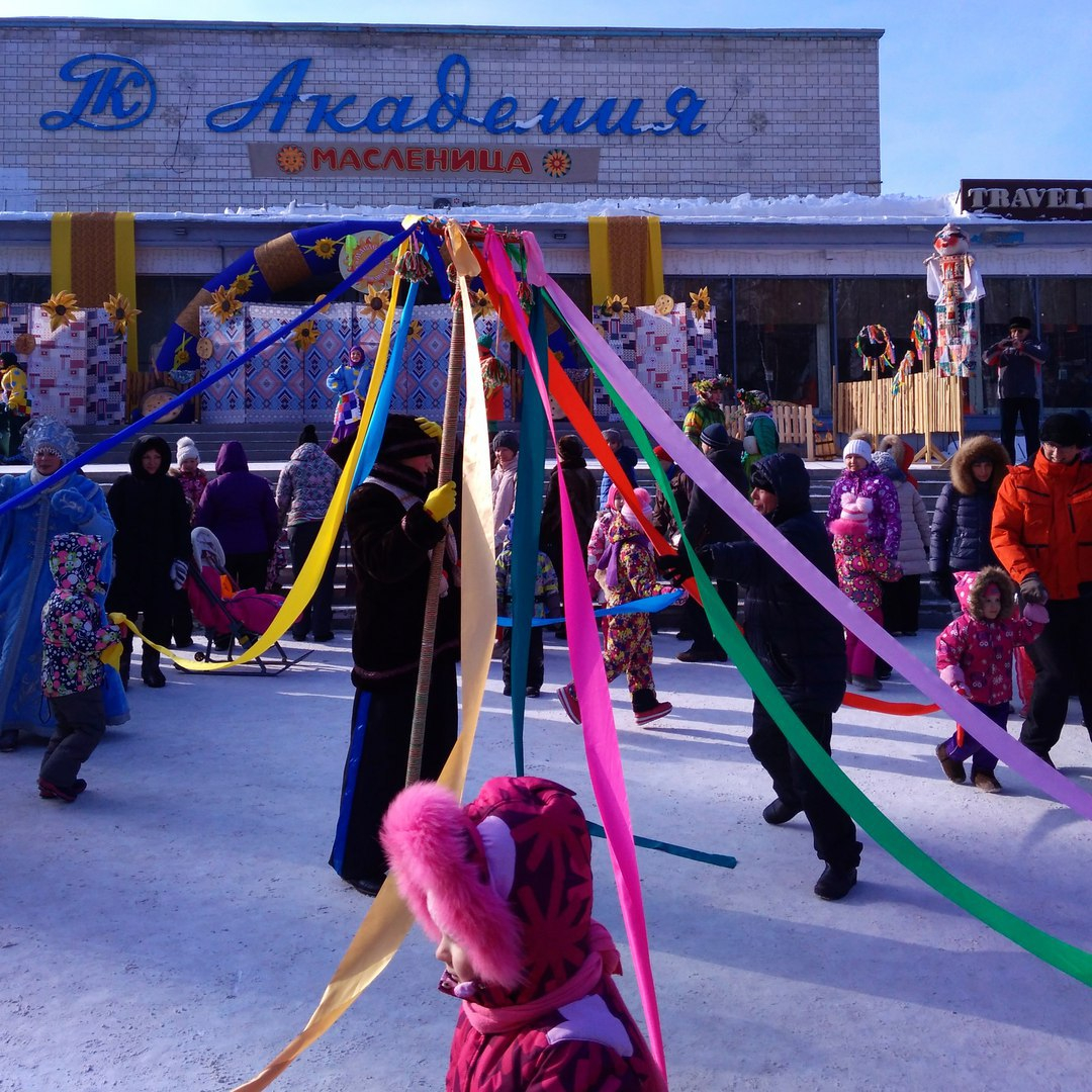 Традиционное гуляние прошло около ДК «Академия». На крыльце шел концерт, а на площади проводились конкурсы и народные забавы для детей и взрослых.