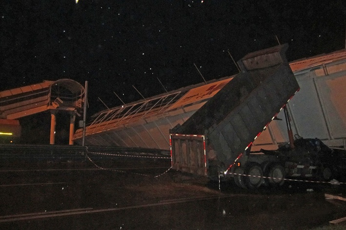 Напомним, пешеходный переход был разрушен в июле 2015 года. Тогда водитель китайского самосвала ехал по дороге и, когда подъезжал к мосту, произошло самопроизвольное поднятие кузова. Водитель этого не заметил. От удара кузовом основная конструкция моста «съехала» с опорных балок и рухнула на машину. 32-летний водитель грузовика погиб.