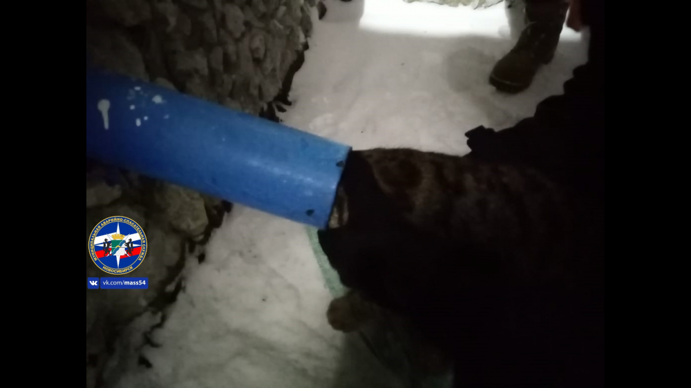 Животное пыталось залезть внутрь трубы, возможно, чтобы спрятаться от холода, – рассказывают спасатели.