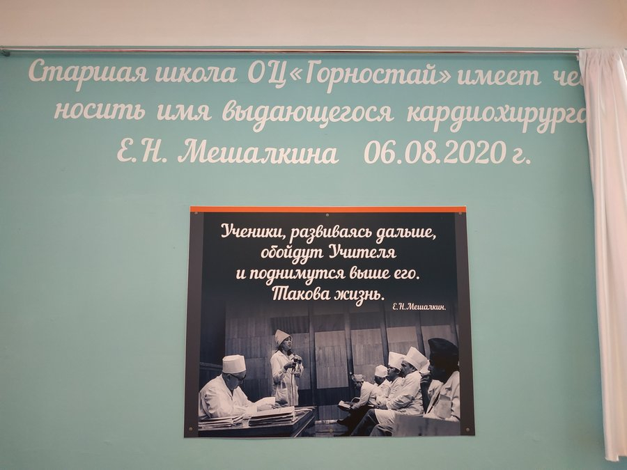 Инициатива присвоения старшей школе «Горностая» имени Евгения Николаевича Мешалкина, известного во всем мире кардиохирурга, появилась несколько лет назад. Администрация образовательного центра прорабатывала этот вопрос с 2018 года.