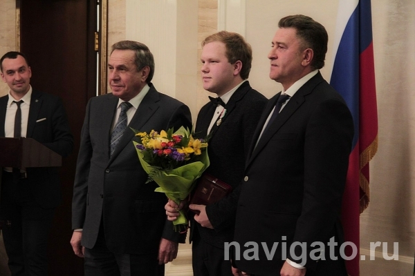 Справка: Знаком отличия «Будущее Новосибирской области» награждаются граждане в возрасте до 25 лет за выдающиеся способности и значительные достижения в различных отраслях экономики, в научной, научно-исследовательской, инновационной, социально-культурной, образовательной и иной общественно полезной деятельности, добившиеся высоких результатов на международных, общероссийских, межрегиональных, областных мероприятиях, а также за публикации в научных и литературных изданиях, научные и инновационные разработки. Вместе со знаком отличия вручается удостоверение к нему и выплачивается единовременное денежное вознаграждение в размере тридцати тысяч рублей.