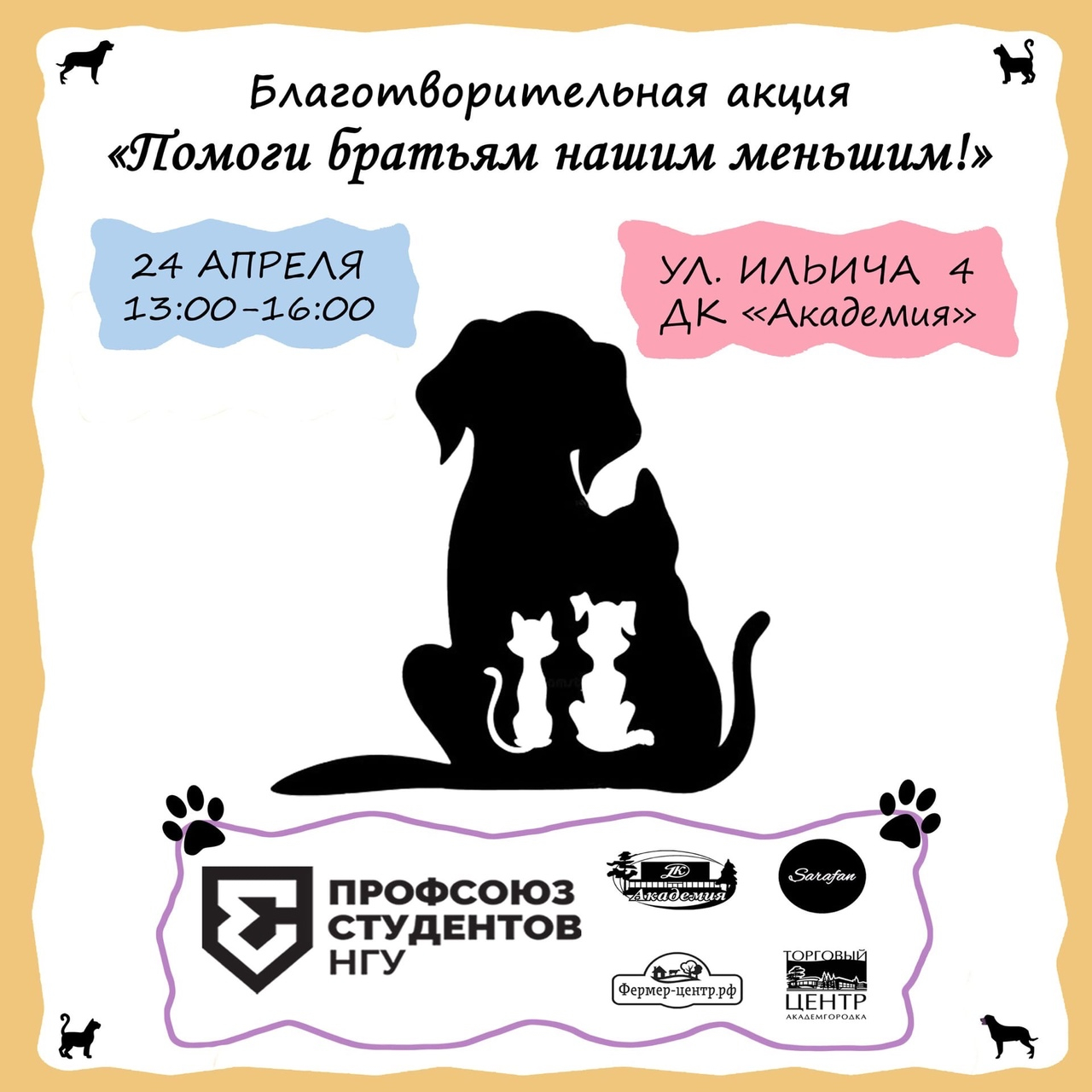 Благотворительную акцию «Помоги братьям нашим меньшим» проводит профсоюз студентов НГУ. 24 апреля, в субботу, они ждут всех желающих помочь обитателям приюта для бездомных животных в Академгородке.