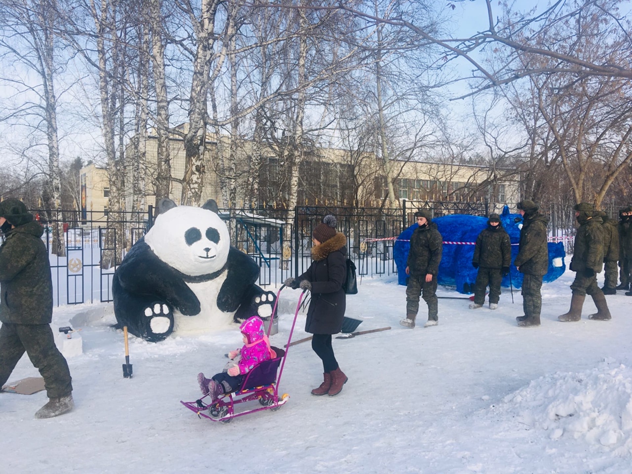– Мы живём на соседней улице – Российской. Обычно тут с ребёнком не гуляем, но, как только знакомые нам сказали, что на Иванова появилась настоящая снежная галерея, теперь только сюда и ходим во время прогулки. Рассматриваем всё, фотографируемся. Очень здорово, что курсанты такое придумали и уже второй год делают, – говорит Мария, жительница микрорайона Щ.