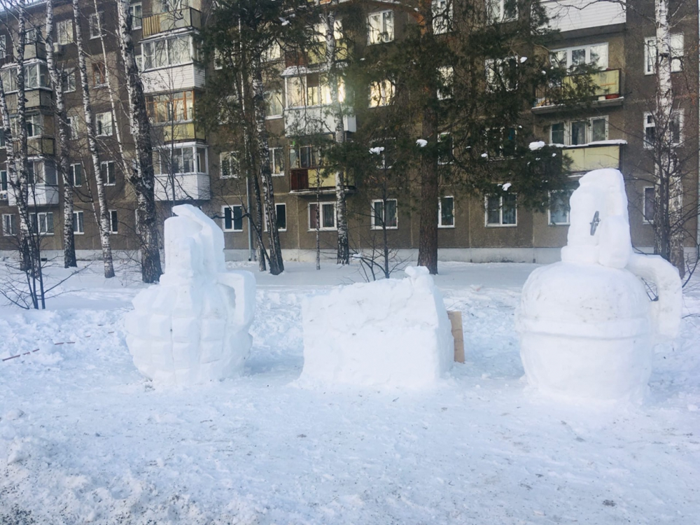 – Мы маму ждали, вижу – а тут три танка у военного училища! Говорю сыну: пошли смотреть. Вон ещё танки поставили. И только когда уже близко подошли, я понял, что это не настоящая техника, а фигуры из снега. Молодцы, парни, очень здорово! – говорит Дмитрий.