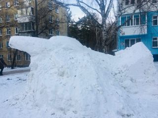 Огромные снежные фигуры привлекают внимание прохожих.