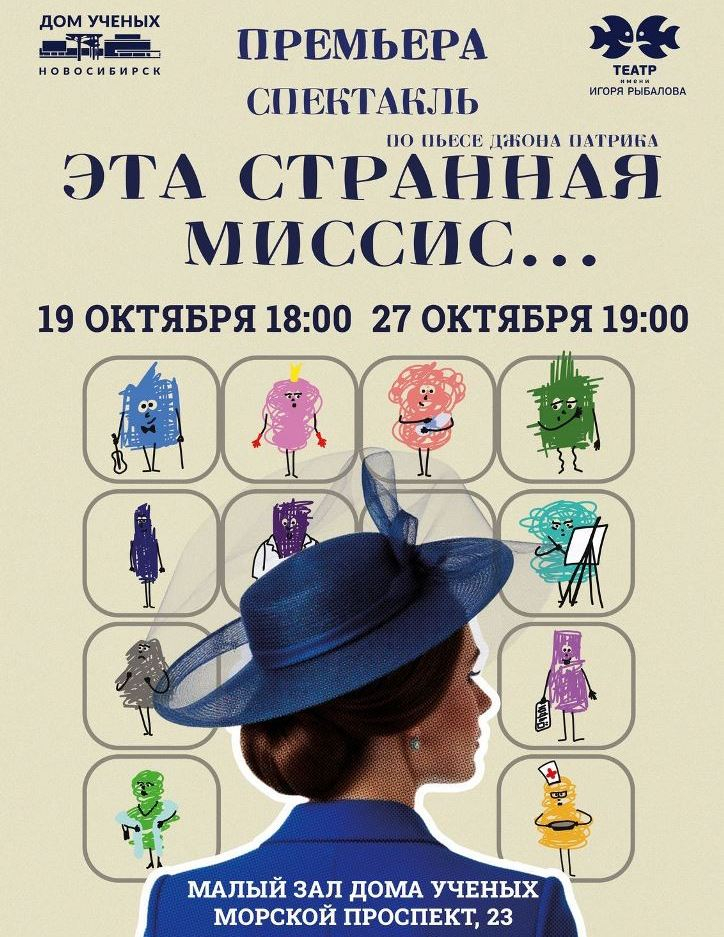 Творческий коллектив, который уже несколько лет базируется в Доме учёных, подготовил к открытию сезона премьеру «Эта странная миссис…» (12+).