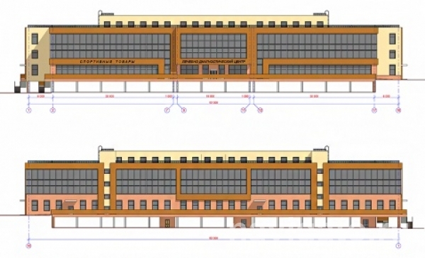 В здании будет три надземных этажа, цокольный этаж, парковки, магазин спортивных товаров, поликлиника, физкультурно-оздоровительный центр, клиринговая компания, административные помещения, кафетерий.