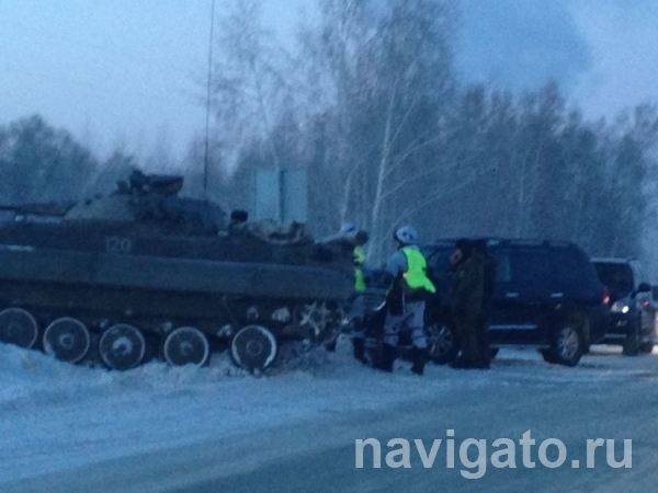 ​Утром 31 января под Новосибирском — между Академгородком и Кольцово — столкнулись внедорожник «Тойота Лэнд Крузер» и боевая машина пехоты.