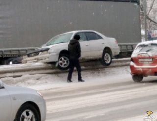 ДТП произошло на Бердском шоссе. Водитель автомобиля «Toyota Corona Premio» не справился с управлением и заехал на металлический разделитель на проезжей части, сообщает издание КП-Новосибирск. Озадаченный водитель вылезал из своего авто, как из КамАЗа...