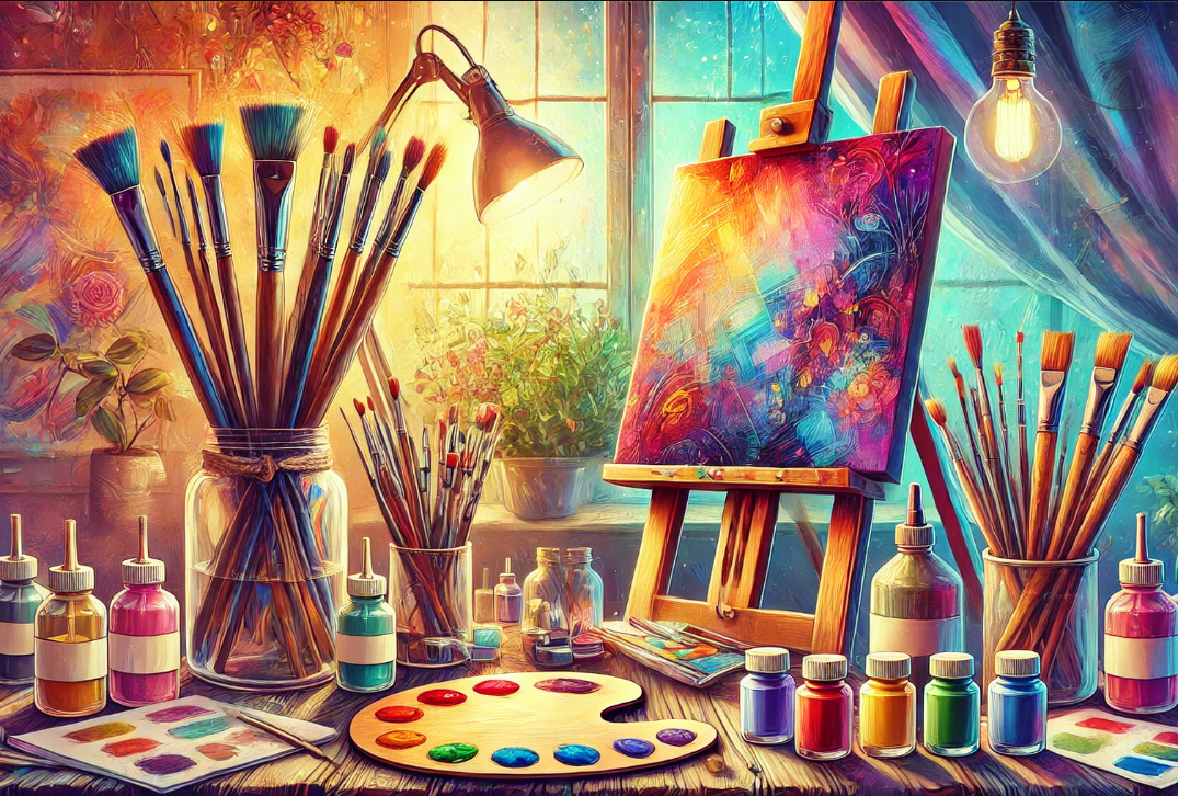 1. Краски и кисти. Предлагаются масляные, акриловые и акварельные краски, а также профессиональные кисти для всех видов творчества.