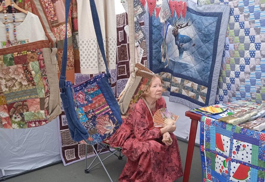 Площадка перед ДК превратилась в ярмарку народных промыслов. Тут и изделия из дерева, и украшения из натурального камня и бересты. А центральное место занимают одеяла, панно, коврики и другие изделия, выполненные в различных техниках пэчворка. В одном только Новосибирске успешно работают 12 лоскутных клубов. За годы популяризации этого вида творчества стали появляться торговые точки, ориентированные на всё необходимое для лоскутного шитья.