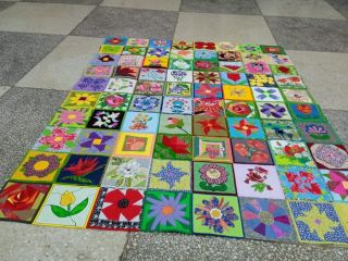 Второй день – время обмена опытом и поддержания сложившихся за 12 лет фестивальных традиций. Уже собраны отдельные элементы для общего одеяла на тему «Цветы», и художница Елена Юдина компонует из них большое изделие, которое решено подарить Дому культуры «Академия» на юбилей.