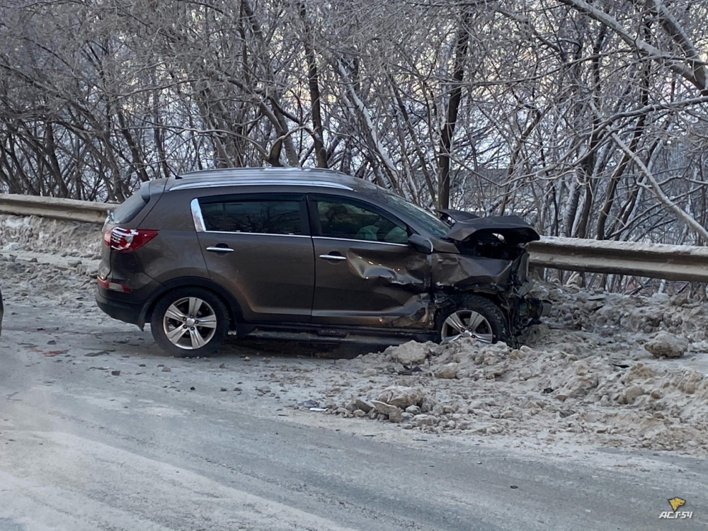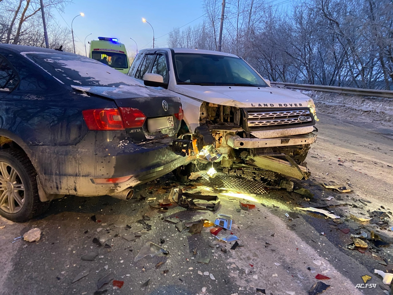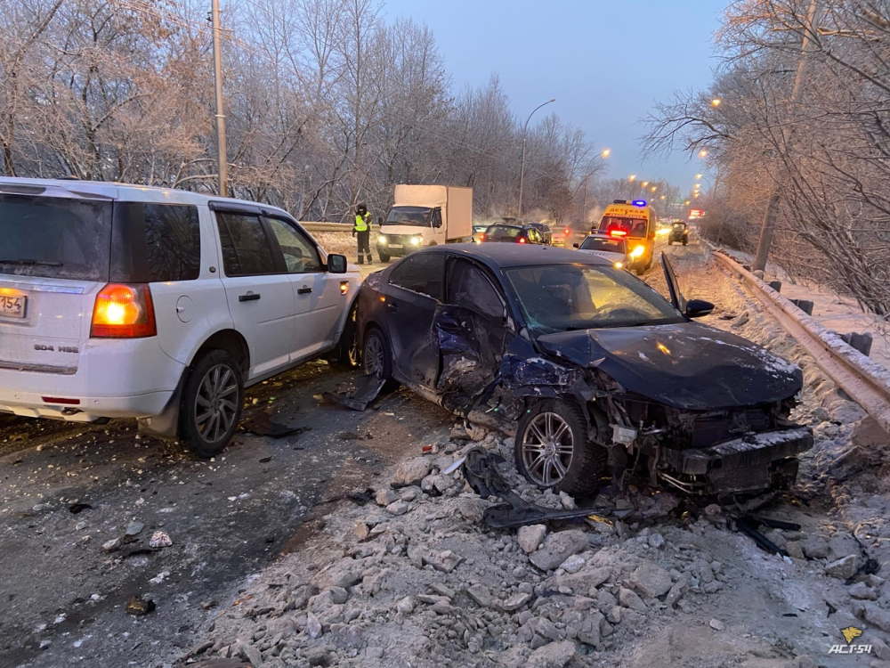 Серьезная авария произошла утром в среду, 6 января. На винавоповском мосту в Новосибирске столкнулись три автомобиля: седан Volkswagen Jetta, Land Rover и кроссовер KIA Sportage.