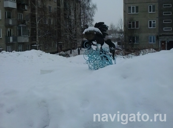 Объект внутриквартального благоустройства во дворе дома по ул. Молодости, 54 завален снегом буквально по самый хвост.