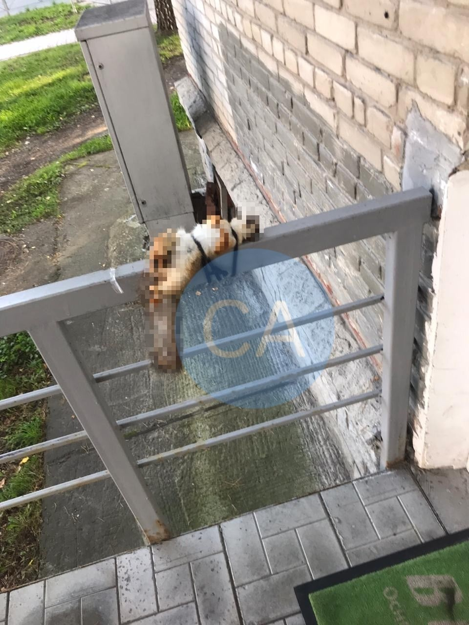 Труп животного неизвестный примотал к перилам одного из магазинов на Морском проспекте, 1.
