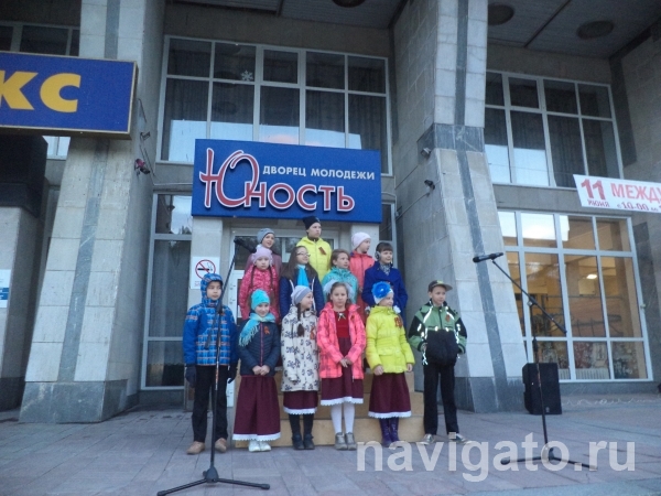 Спеть главную песню дня пришли люди разного возраста. Солировал на крыльце хор ДМШ №15. Тринадцать артистов  в нарядных концертных костюмах исполнили «День Победы», руководила детьми  Анна Юдина.