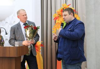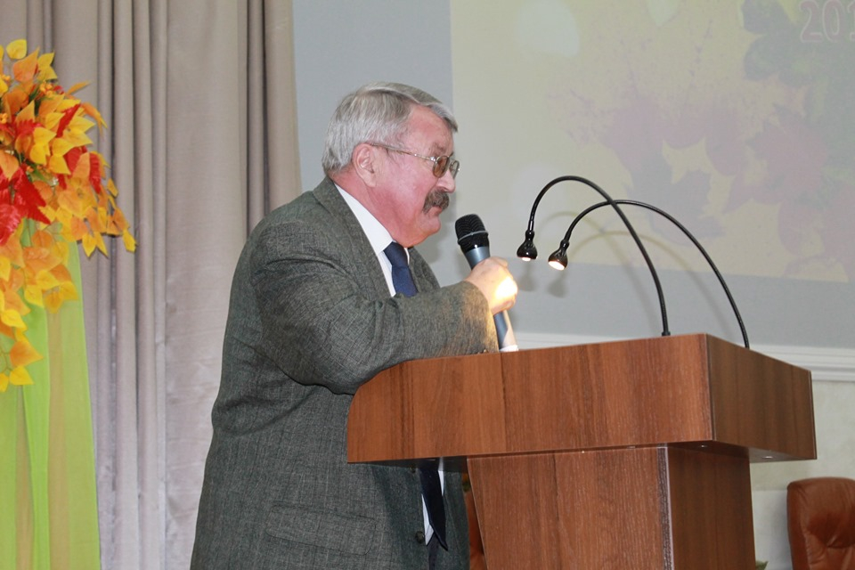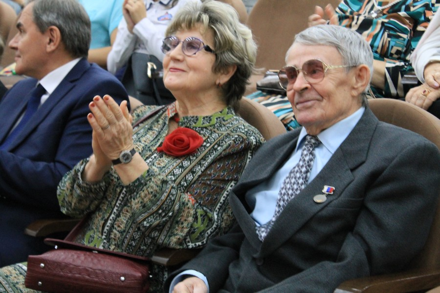 Одним из самых трогательных моментов торжественного собрания стало вручение цветов ветеранам педагогического труда после выступления кавалера ордена Трудового Красного Знамени, отличника народного просвещения РФ, заслуженного учителя России Сергея Смирнова.