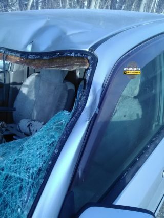 ЧП произошло около 12 часов дня 3 февраля. На ехавший по трассе автомобиль упало спиленное лесной охраной дерево.