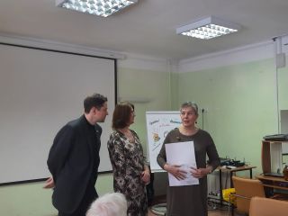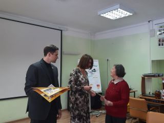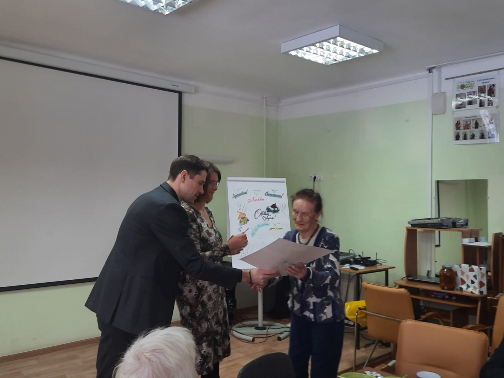 Итоговое мероприятие прошло в молодежном центре «Калейдоскоп», где в первой половине дня теперь занимаются люди старшего возраста. Депутат горсовета Наталья Пинус и депутат Госдумы РФ Александр Аксененко поздравили выпускников с окончанием проекта (он длился три месяца, занятия проходили два раза в неделю), вручили дипломы и сувениры.
