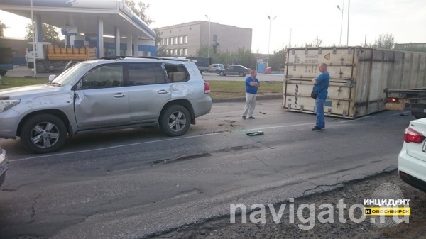 Упавшим с фуры контейнером едва не раздавило авто в Бердске