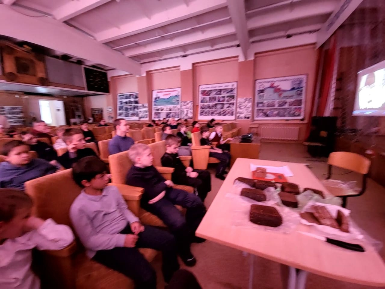 На уроке мужества были показаны фрагменты фильма о блокаде Ленинграда, а также продемонстрирована суточная норма хлеба в 125 граммов.